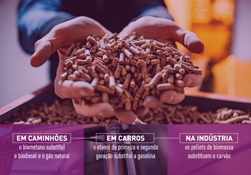 A Raízen promove a economia de baixo carbono com um portfólio de energias renováveis. Estas substituem fontes de energias fósseis e consequentemente reduzem as emissões de CO2 para a atmosfera. Veja alguns exemplos: